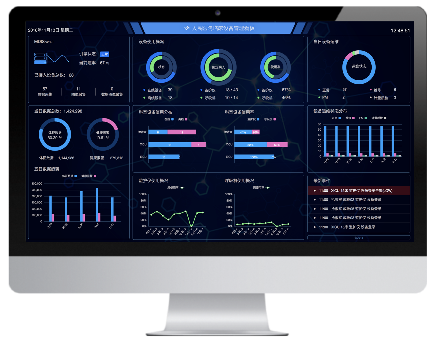 多臺不同品牌的有創(chuàng)呼吸機聯(lián)網(wǎng),并通過大屏實時集中呈現(xiàn)治療預設參數(shù)和監(jiān)測參數(shù),實現(xiàn)多臺集中監(jiān)測、集中管理和數(shù)據(jù)存儲。
